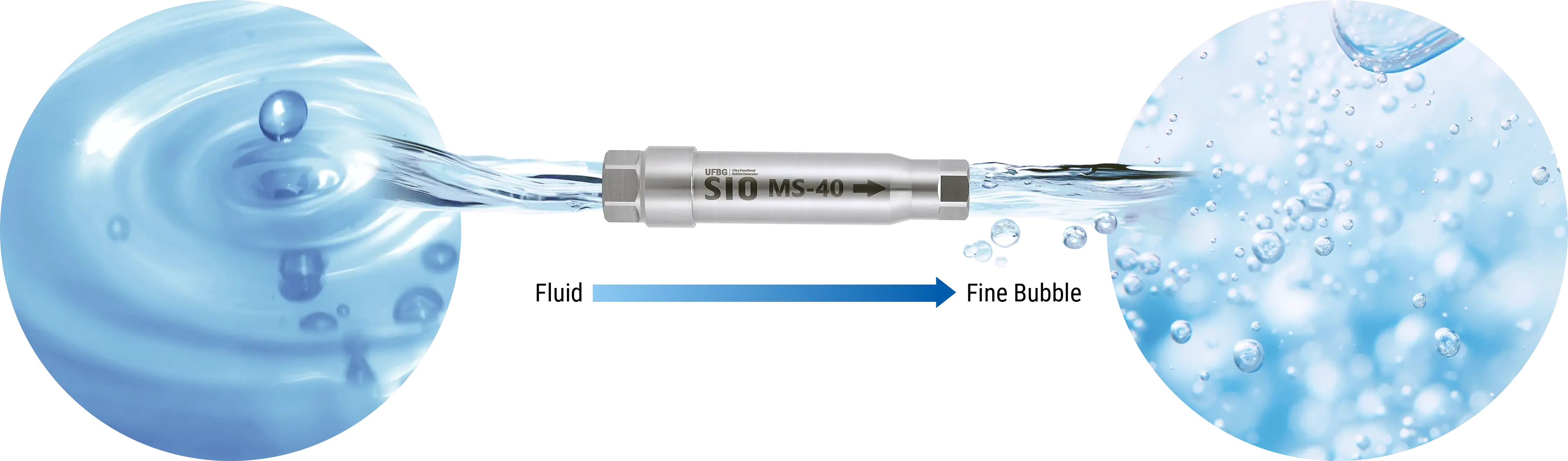 Simply by installing SIO into your industrial water system, your washing and processing liquids are transformed into fine bubble water with superior cleaning, cooling, and penetrating effects.