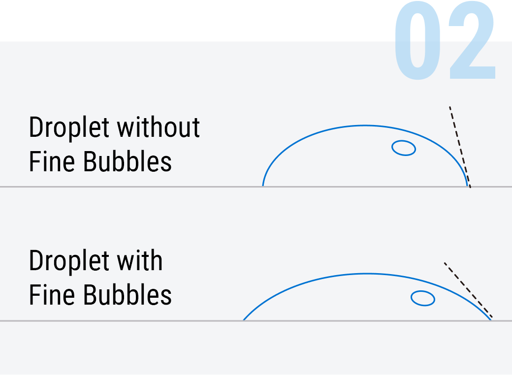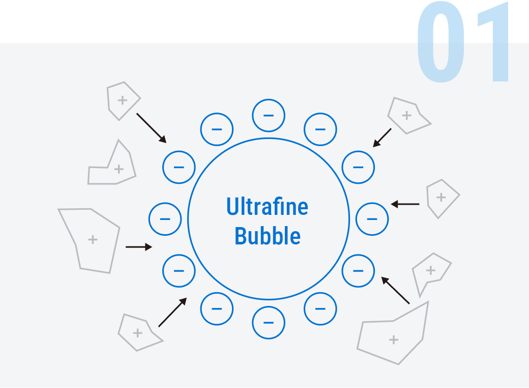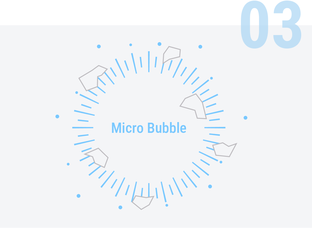 SIO generates a large number of charged fine bubbles that can adsorb dirt. Using bubbles also reduces the need for detergents or solvents, contributing to eco-friendly cleaning.