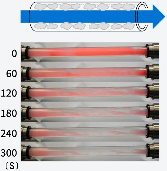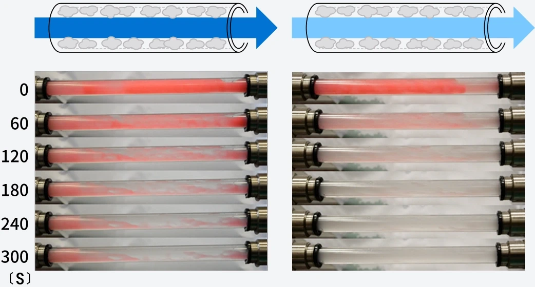 [Test Method] Water was passed through a pipe coated with dirt, and the cleaning performance was compared.