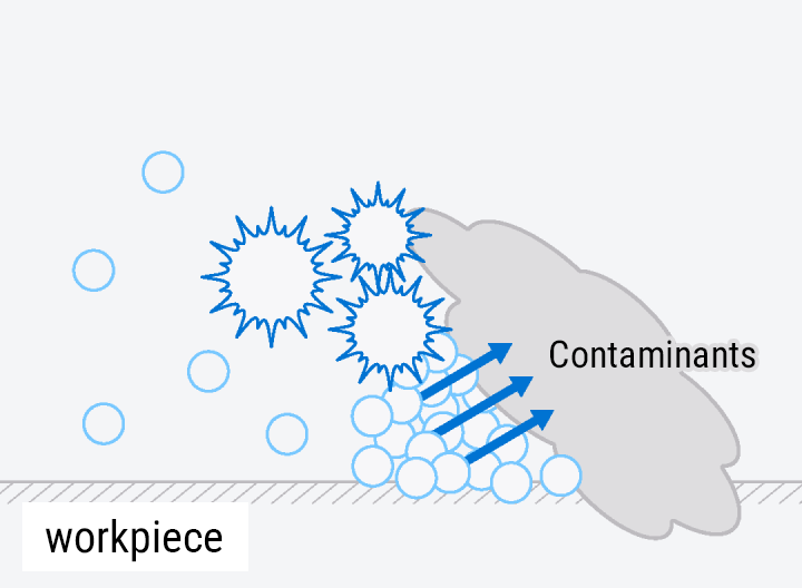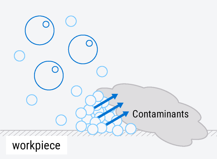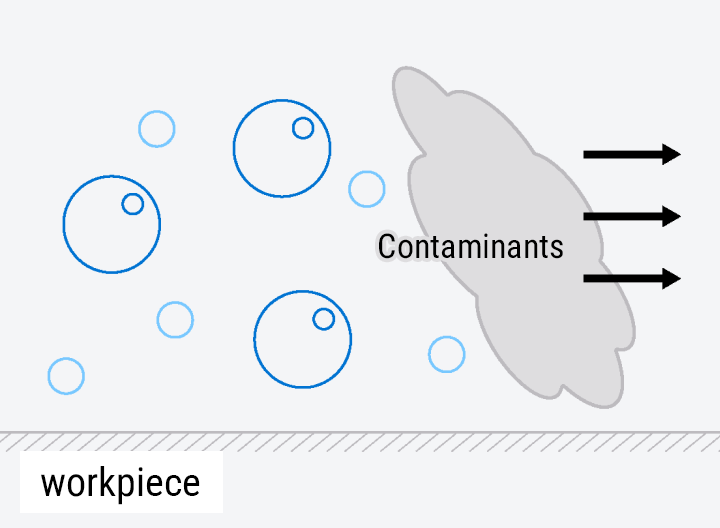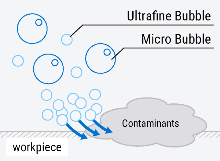 Ultrafine bubbles penetrate the tiny gaps between contaminants and the workpiece.